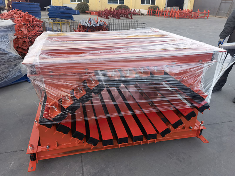 合金橡膠清掃器利用橡膠體本身的彈性性能,可自動調節清掃器刮板與輸送機膠帶之間的接觸壓力,橡膠體的緩沖作用,保證了刮板與運行的膠帶受力在一定合···
